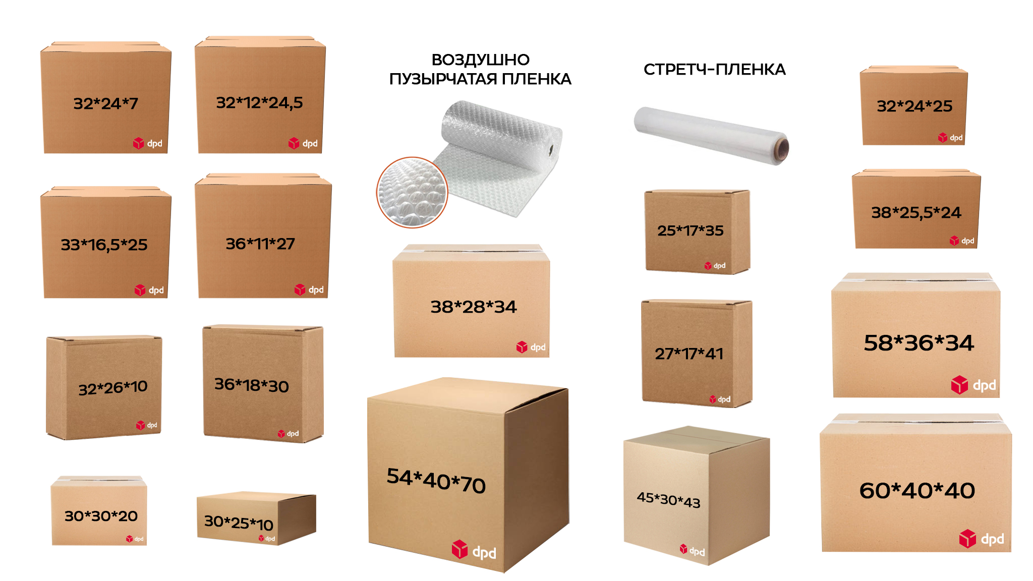 Различные упаковочные материалы DPD позволяют вам подобрать оптимальный вид упаковки в соответствии с характером и габаритами вашей отправки.